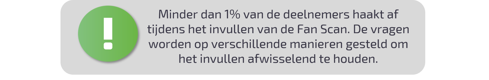 Door op 'Volgende' te klikken ga je ermee akkoord dat je antwoorden worden gebruikt door Fan Factory ten behoeve van je eigen persoonlijke rapport. Hiervoor dien je op het einde van deze vragenlijst je mailadres te geven. Je antwoorden worden vertrouwelijk verwerkt.