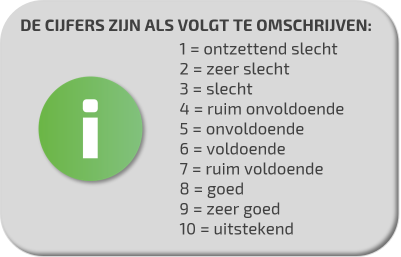 Welk rapportcijfer, tussen 1-10, geef jij de volgende aspecten?